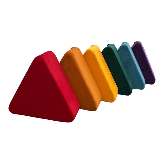 Lightweight and easy for little hands to build and play with. Versatile, can be anything from a slice of pizza to a mountain peak. Bright and cheerful colours, visually attractive. Fluffed up quickly and ready to play.