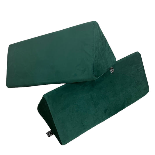 So many good things to say about this half sized playcouch. Foam is firm, sturdy for building and the standard 33" x 66" size works great if you already own other brands. Full sized triangle is so nice to use for support in a build or a back support when lounging. The best part about this playcouch is the covers though. Well made, gorgeous colour (red velvet) and the velvet feels so luxurious. Whimsical Things may be a newer playcouch brand but the owner definitely paid attention to the details that customers want when designing the Whimsy Jr