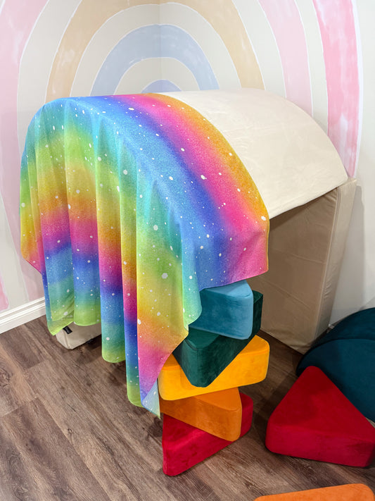 I love how versatile these are! We're currently using them all together in the triangle cover for a build support, but they are so much fun to play with individually as well. The colours are bright and the fabric is so soft.